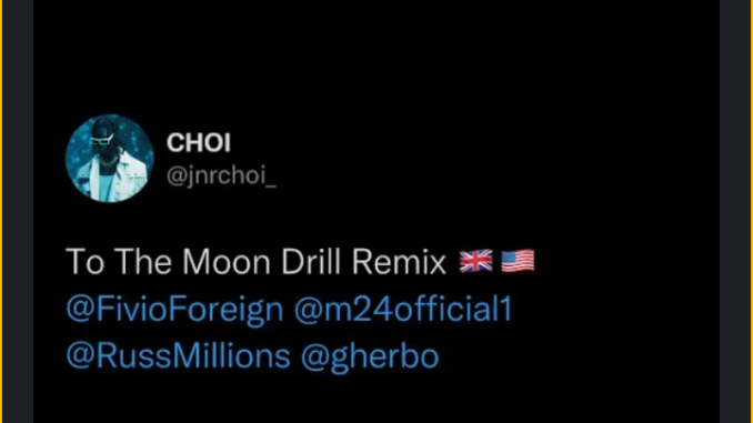 Stream & Download “TO THE MOON (Drill Remix) ” by Jnr Choi, M24, Russ Millions, G Herbo & Fivio Foreign MP3 Below :